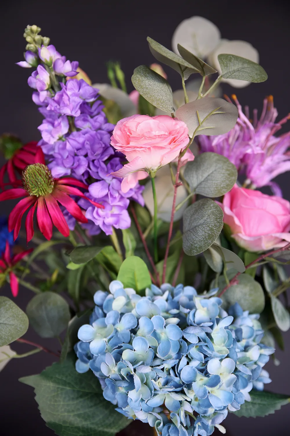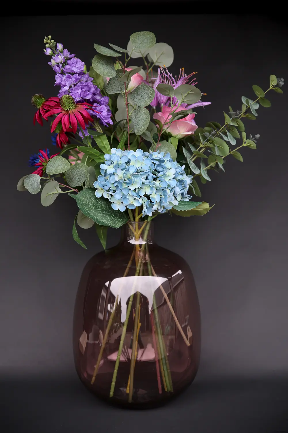 Dit prachtige zijden boeket “Bloom” brengt kleur en gezelligheid in huis. De combinatie van blauwe hortensia, roze rozen en speelse veldbloemen zorgt voor een levendige en natuurlijke uitstraling. De bloemen zijn gemaakt van zijde van hoge kwaliteit, waardoor ze bijna niet van echt te onderscheiden zijn. Je hebt er geen omkijken naar, dit boeket blijft het hele jaar door mooi.